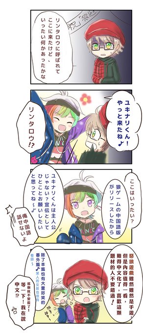 謎猫 En Twitter 前回の続き 今回はリンタロウのイラスト 明るいリツのと違って 雰囲気はちょっと危ない感じ せっかくだから おまけとして4コマ漫も描いた 日本語 中国語 狼ゲーム イブプロ リンタロウ 惡狼遊戲